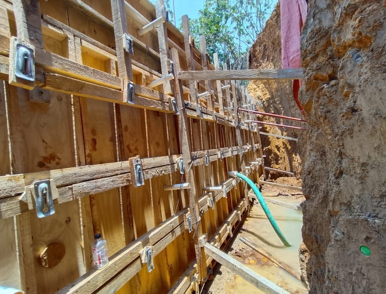 Muro de contención de concreto armado, en clinica del IMSS, en Córdoba, Veracruz.